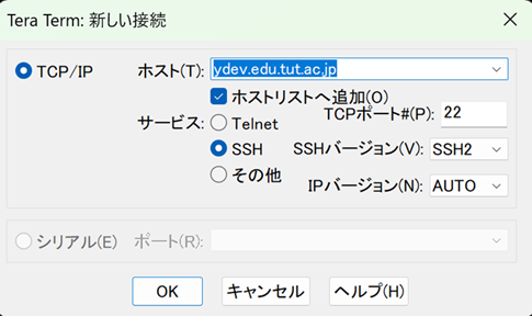 TUT HPC Cluster Wiki: SSHClient / WindowsCUIの添付ファイル:teraterm-connect-1.png